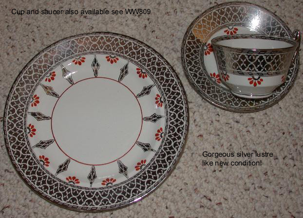 silver lustre+burnt oj, 8 1/8" DIA See Cup/saucer ww809