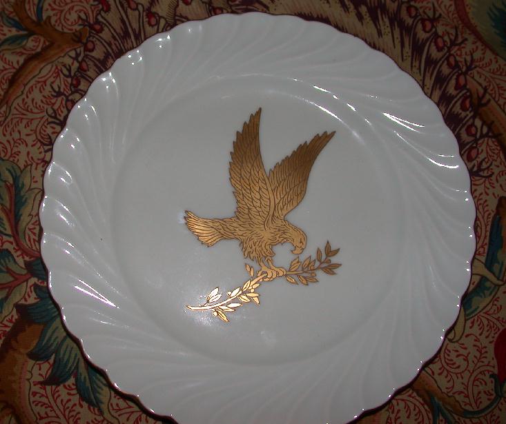 Gold eagle on white fine china, 7 5/8" DIA 3 available