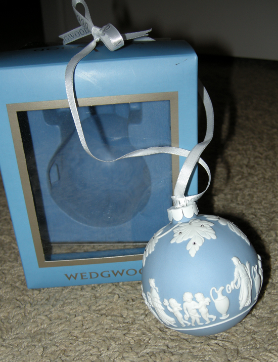 WHITE ON PALE BLUE PORCELAIN, 10" CIRCUMFERENCE